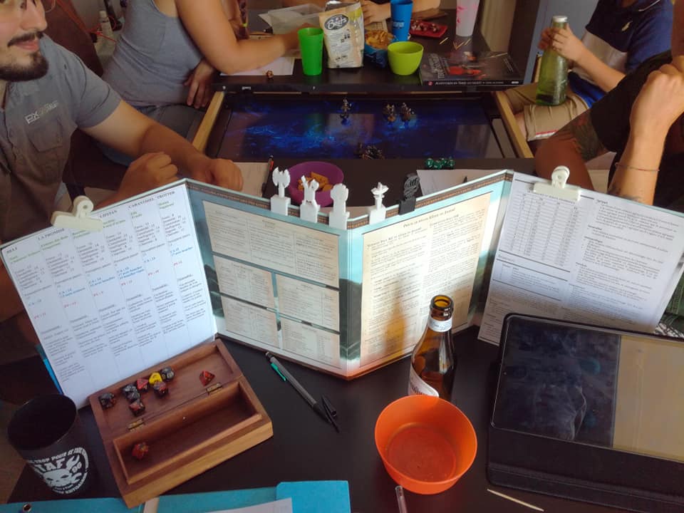 a noter que le bout de table côte MJ est légèrement plus large car en tant que MJ on a toujours un paquet de feuilles et de livres sans compter l'ordi portable.