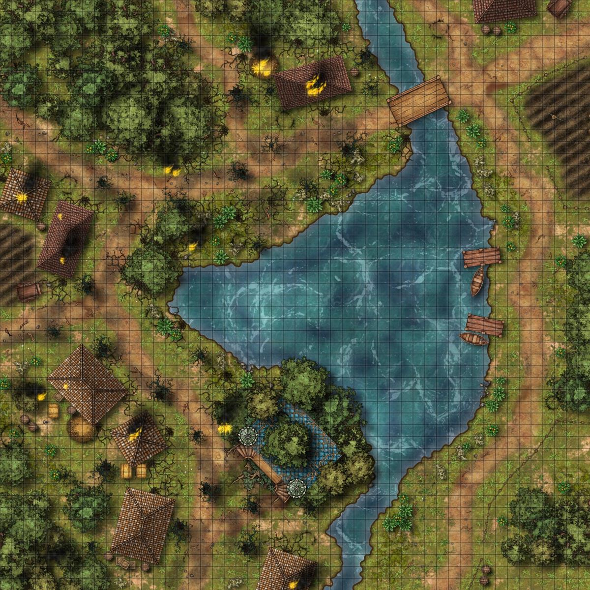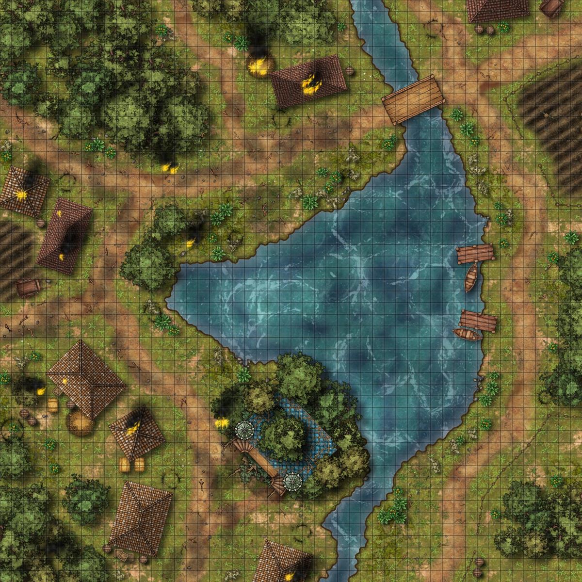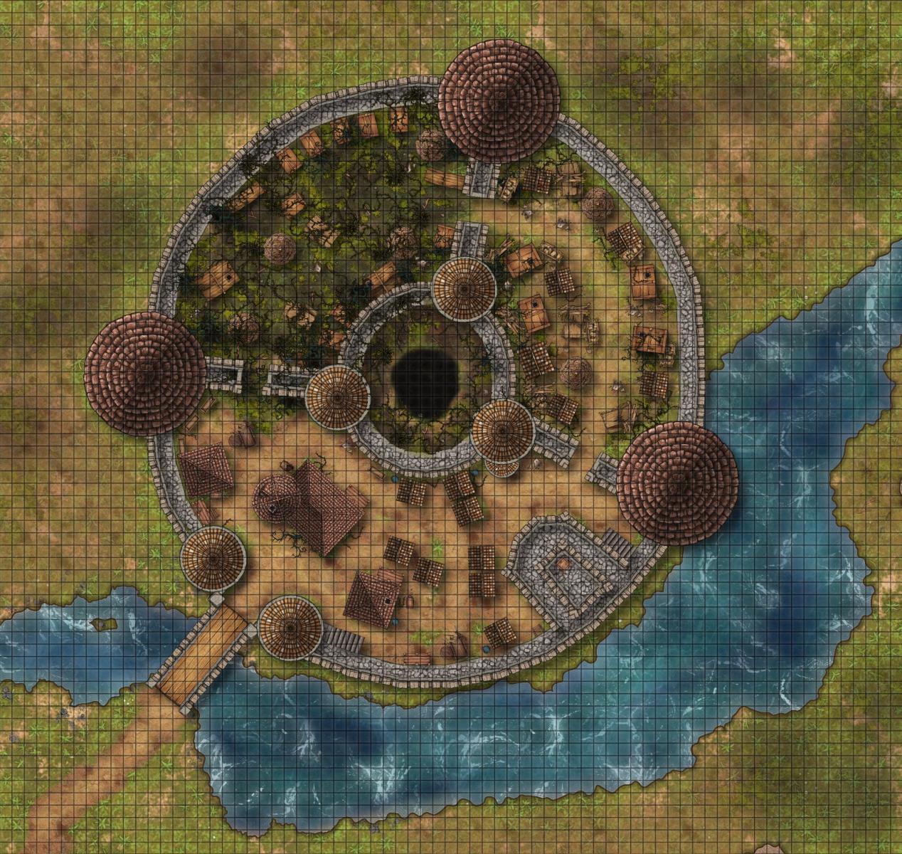 Salut à tous, voici comme promis les versions de myrlune assiégée et avec les ronces. J'ai pris le parti de garder la zone à l'est du pont relativement intacte, puisqu'elle est censée être défendue par les PJ.