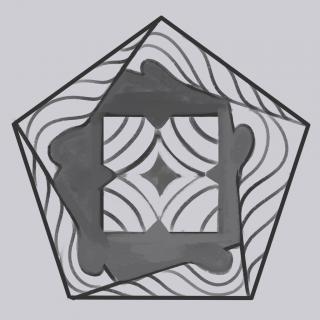 Il représente bien entendu un temple du Lindo vu du dessus, avec la tour carrée au centre d'un chemin de promenade pentagonal.