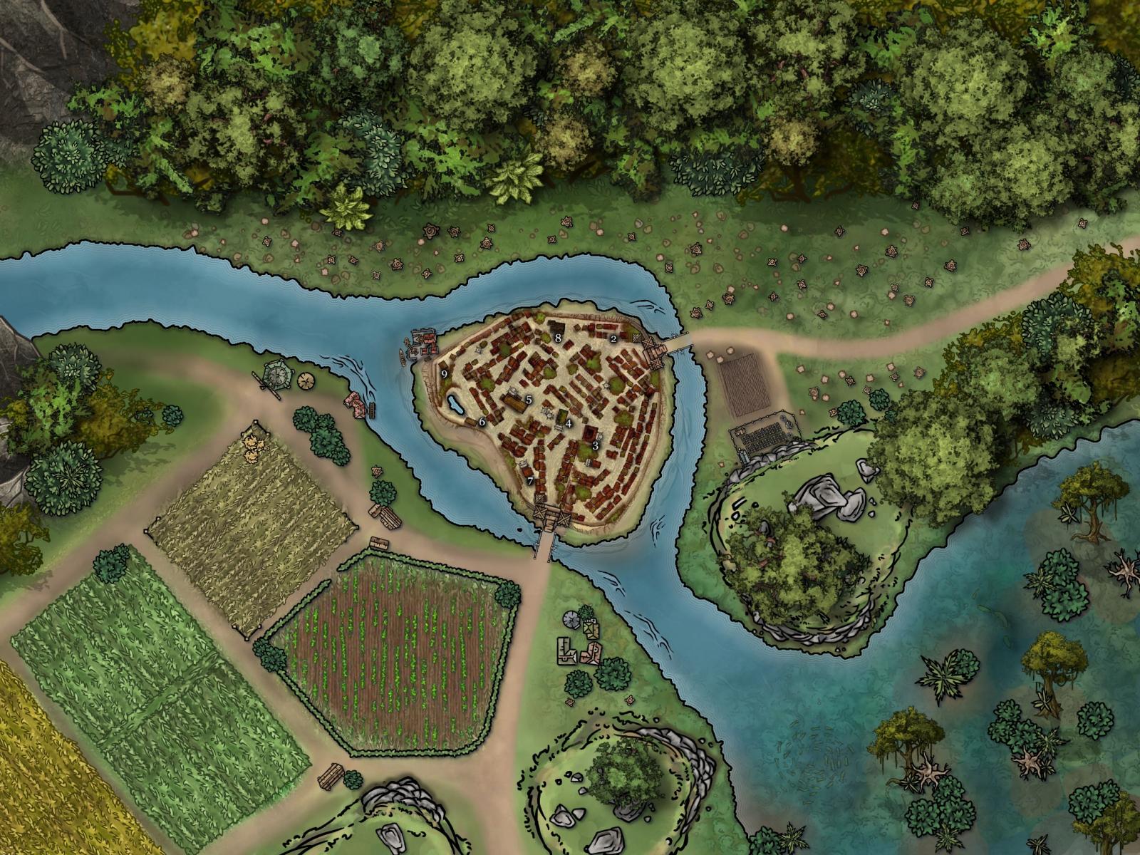 J'ai préparé une map de Fleck avec un peu d'espace autour de la ville pour la bataille du scénario 8 sur inkarnate, on était un peu à l'étroit sinon pour placer les troupes. Vu que j'utilise la map de base du livre, voilà le partage