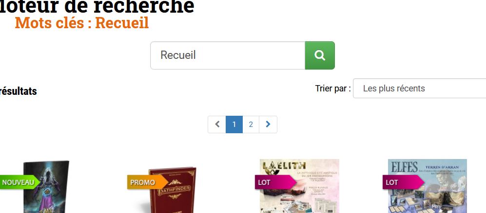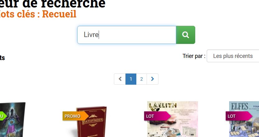 Et quand je clique sur l'icône "loupe" (vert et blanc à droite du champ de recherche) pour lancer la nouvelle recherche, eh bien le champ est modifié malgré moi, et j'ai de nouveau "Recueil" qui apparaît, et la nouvelle recherche, celle avec "Livre", n'aboutit pas, je reste sur la recherche "Recueil".