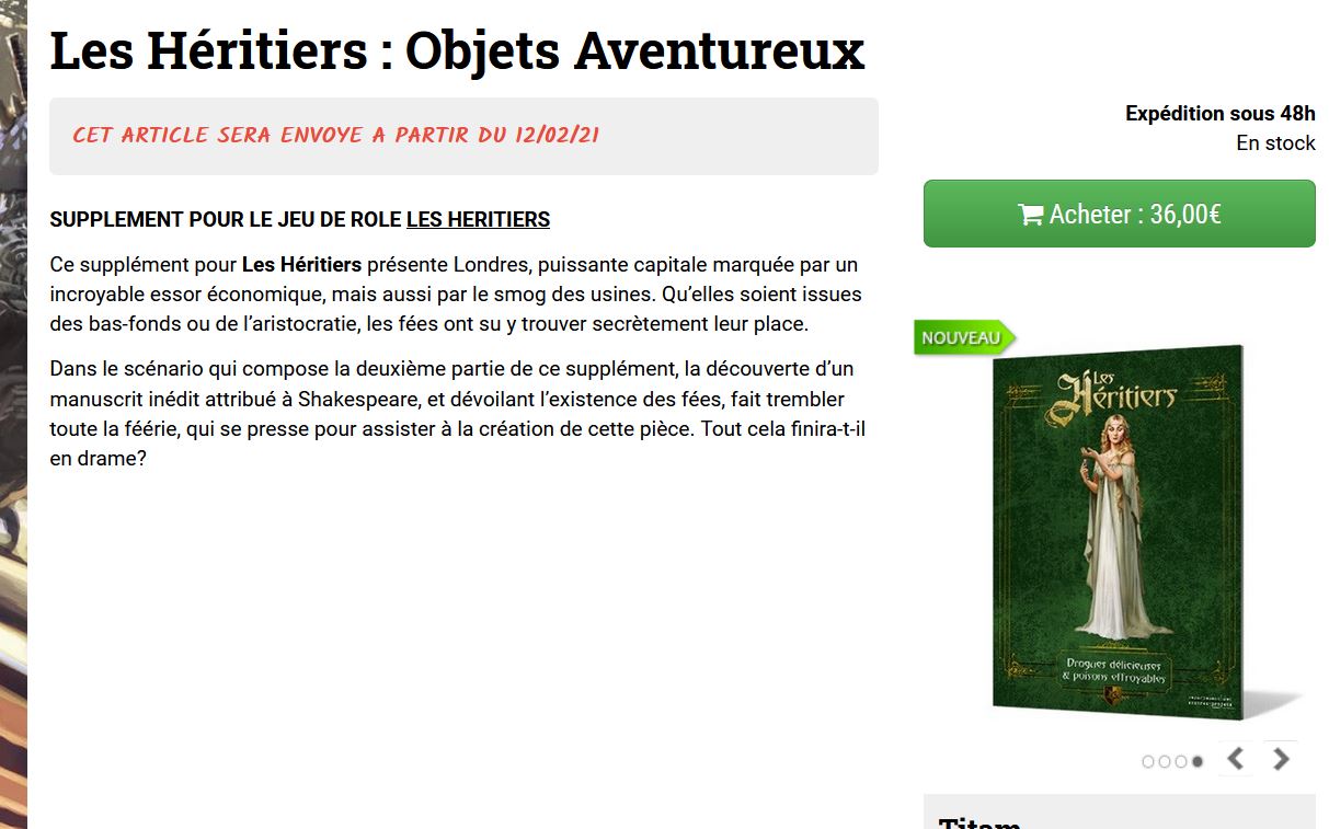 Sauf erreur de ma part, la page du produit Les Héritiers : Objets Aventureux a un texte de présentation erroné (celui de Londres).