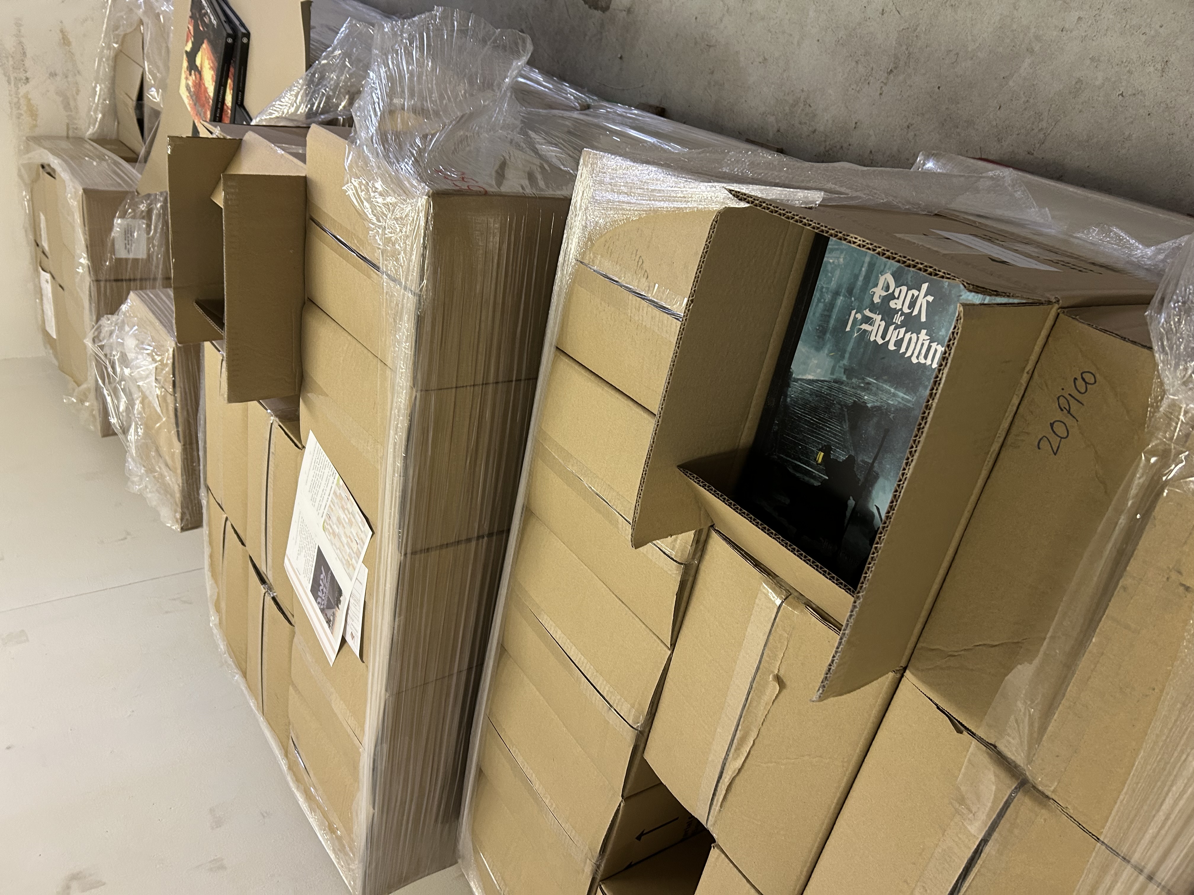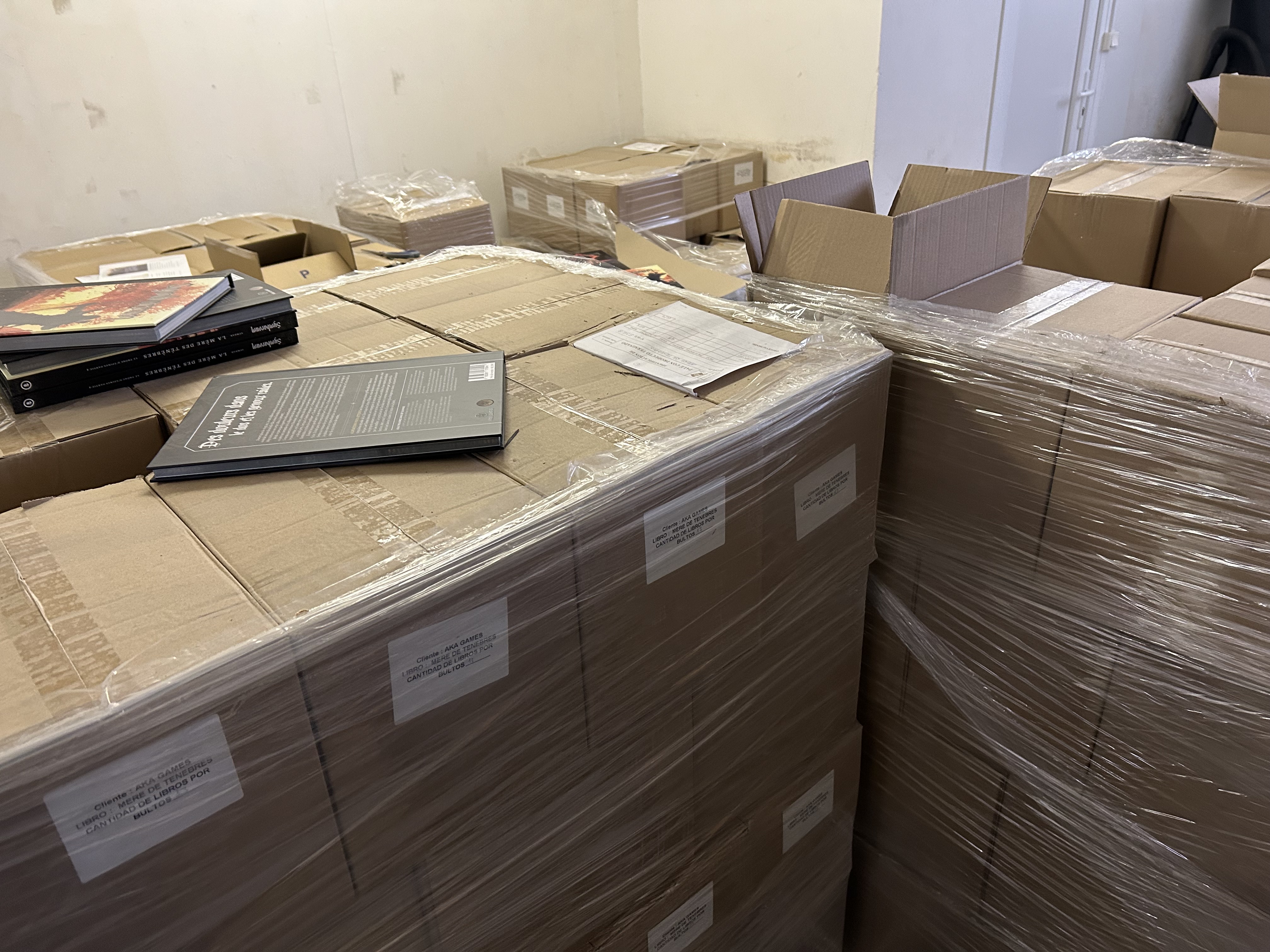 Tous les produits sont arrivés dans nos locaux ! Quatre tonnes de livres, livrets et cartes à classer pour créer des packs !