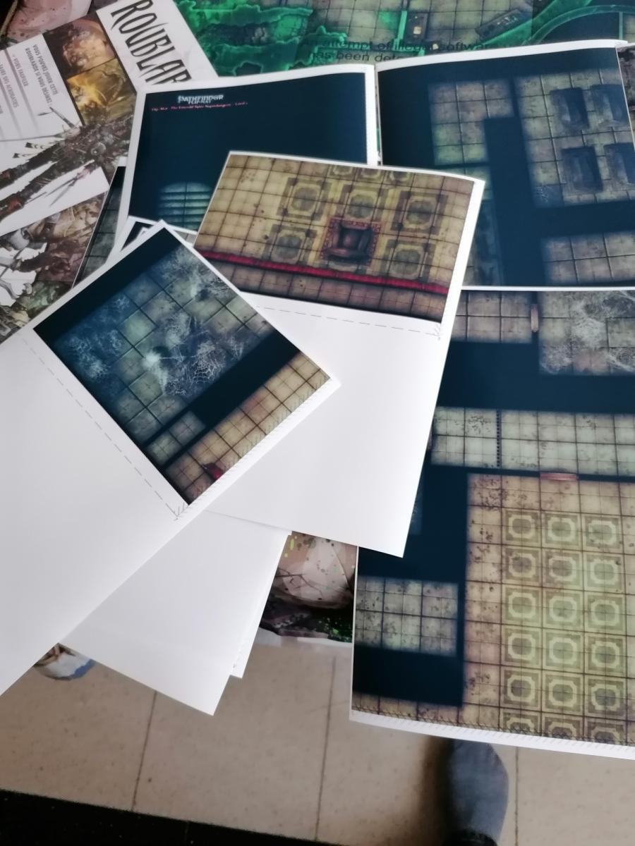 Bon jai fait un essai sur les 4 "premières pièces" du donjon de la boite d'initiation sur des impressions à la maison. Un peu mal au coeur de découper un poster... Même si pour les maps en extérieurs ça vaut certainement le coup et je finirai par craquer !