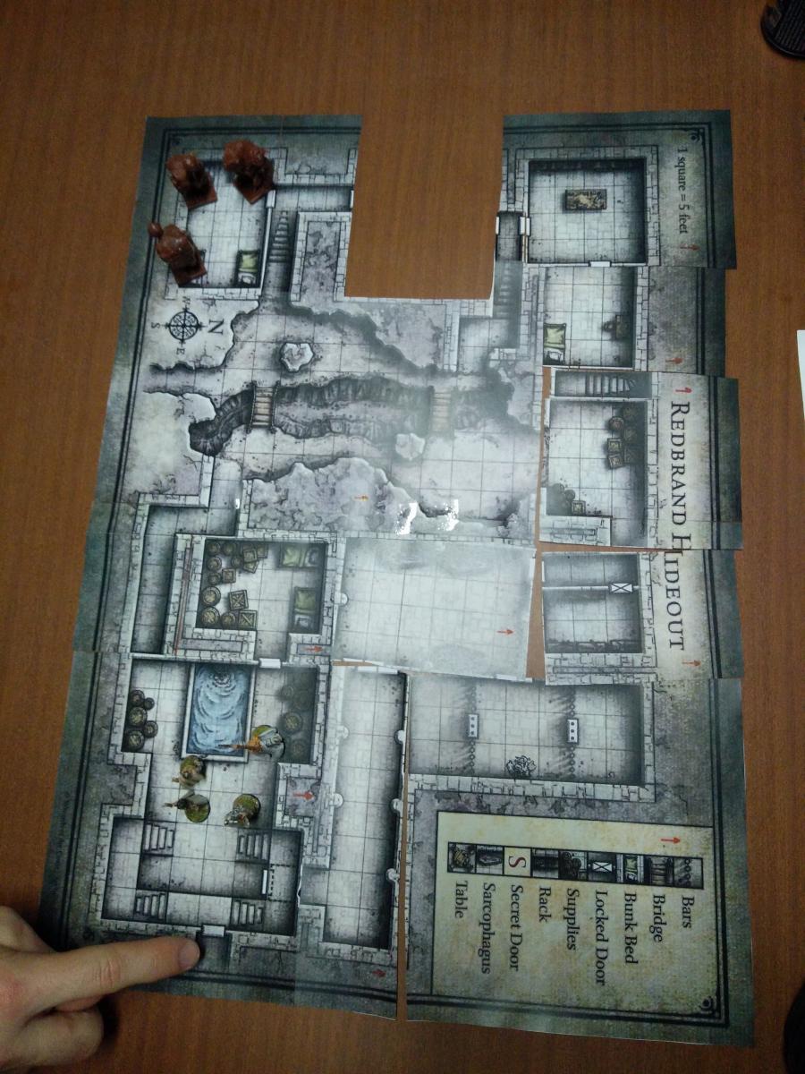 A la base je souhaitais découper les salles de "Redbrand Hideout"... Mais j'hésite maintenant ça me fait un peu mal au coeur. Et je me tâte à prendre des élements de déco 3d en plastique (table, lit, tonneaux...).