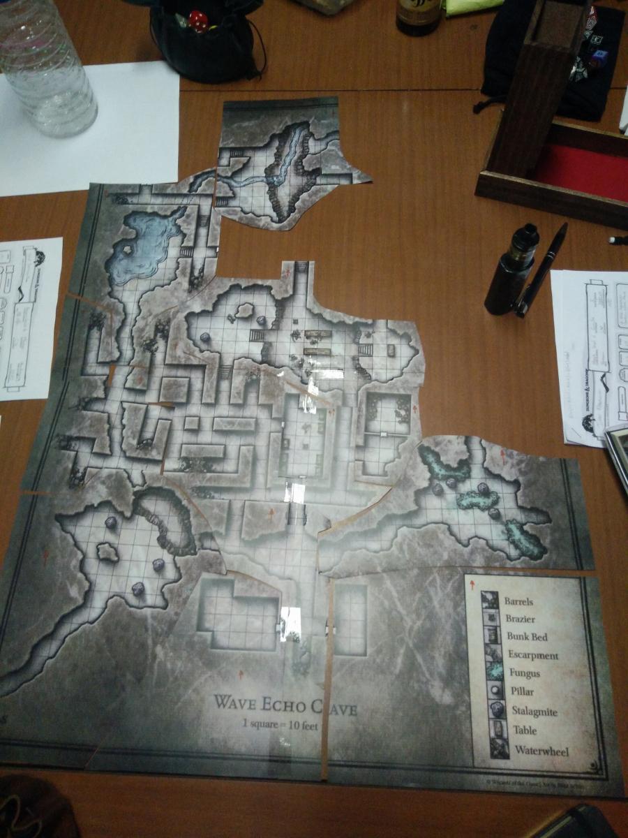 Typiquement pour "wave echo cave" il faudrait des cases de 2 pouces (et idéalement subdiviser les cases existante). L'échelle de cette carte et d'un carreau = 10 pieds.