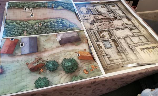 et j'attends les 2 plus petits intitulés "dungeon" qui ont fait l'objet d'un Kickstarter. Et avec ça j'ai quelques "flip-mats" génériques du type forêt, dallage intérieur, plaine et désert. Et franchement j'en suis 100% satisfait."