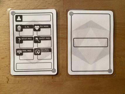 La carte d'inititaive se fixe au-dessus de l'écran du MJ à l'aide d'une pince clip (ou d'un trombone). La face avant (côté MJ) permet d'avoir accès aux principales informations utiles en exploration ou en combat tandis que la face arrière (côté joueurs) porte le nom du PJ. Il suffit de les ordonner dans l'ordre d'initiative à chaque combat.