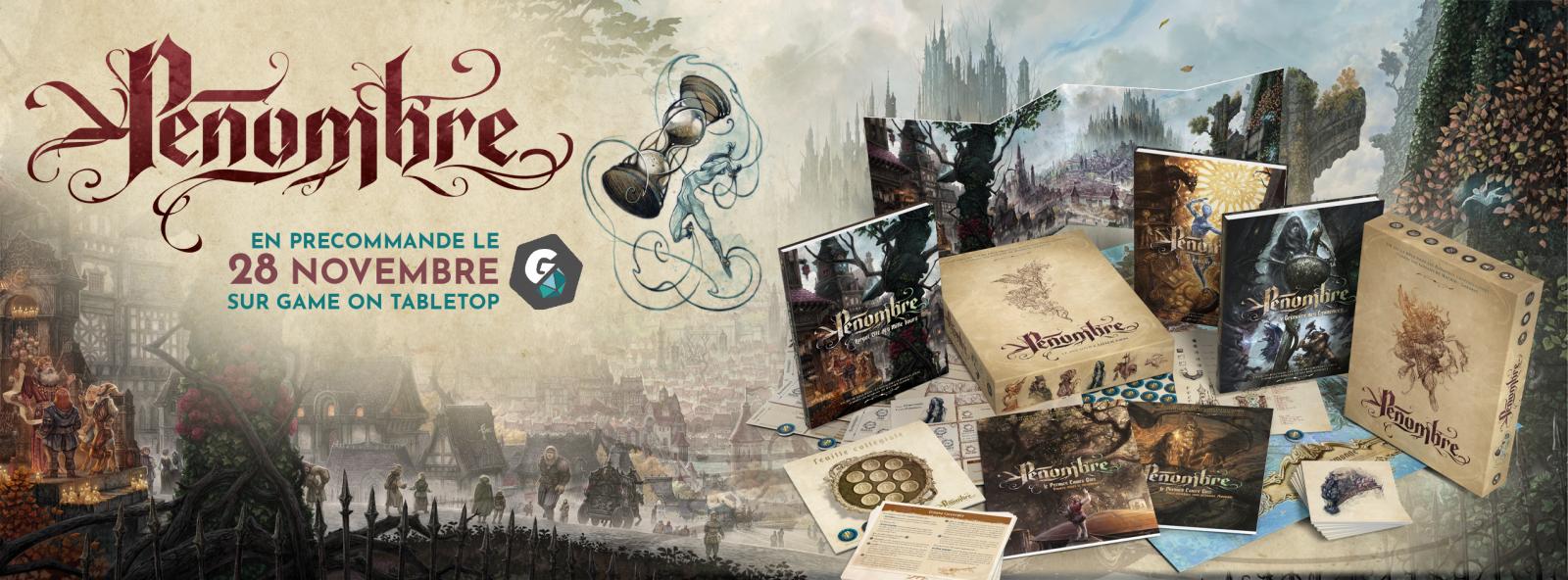 - Nous serons à Octogônes avec un stock de coffrets Pénombre, sur le stand de Book In Game avec nos amis d'Antre Monde, Deadcrows, Pattern Recog, etc. Nous organiserons aussi des parties sur le stand, mais "à l'arrache" (le problème des hommes-orchestres, c'est qu'ils ne sont pas toujours au taquet sur tous les sujets... moi, c'est l'orga ^^).