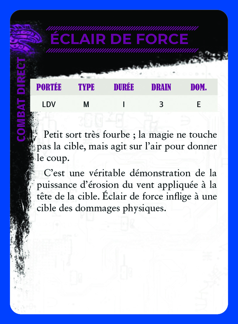 Le tour en bleu, c'est juste pour que ça ressorte sur un fond de page blanc. Donc s'ils n'y a pas de sorts en VF officiels, j'aurai les miens...