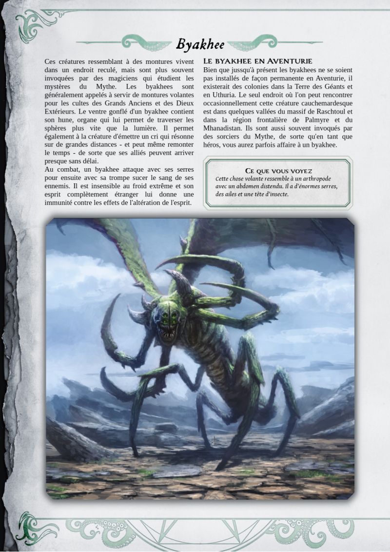 Super boulot ... visiblement quelqu'un a traduit le texte du livre expliquant l'intégration du Cthulhu Mythos a l'Aventurie ... (perso je m'étais limite à des stats blocs pour le moment