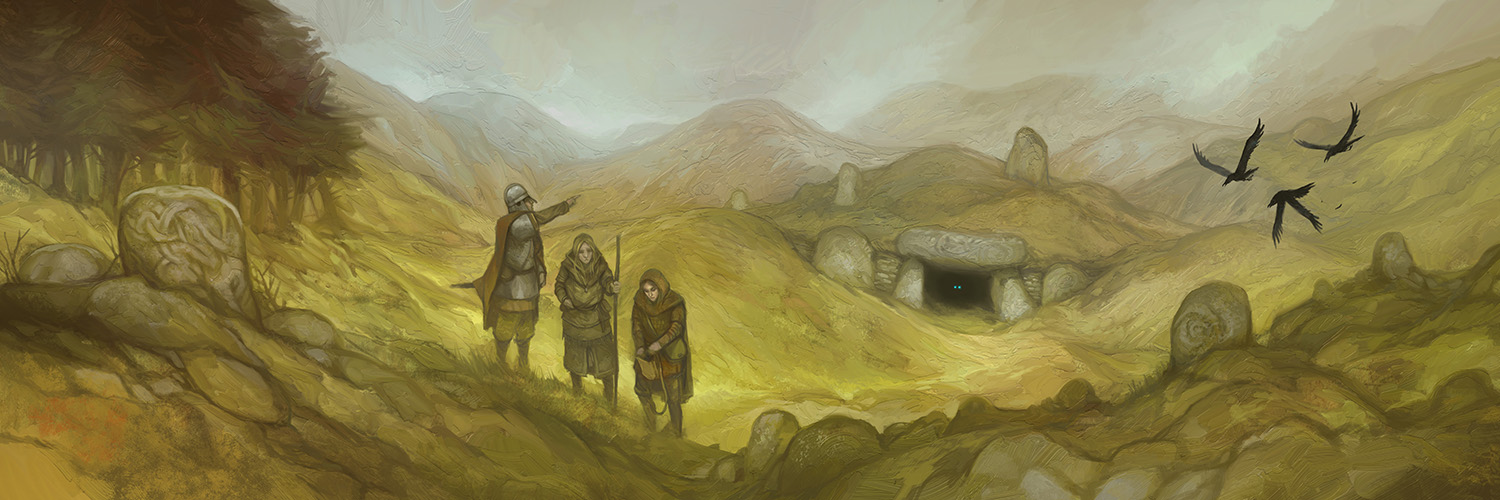 En premier lieu donc Jon Hodgson qui a réalisé les couvertures et une partie des illustrations intérieures de la gamme. Certains ont sûrement trouvé ces dessins familiers surtout s'ils possèdent des ouvrages de la gamme Anneau unique et Aventures en Terre du Milieu. Je vous invite d'ailleurs à visiter son site pour voir une partie de ses travaux que nous trouvons vraiment très inspirants : https://jonhodgsondesign.com/