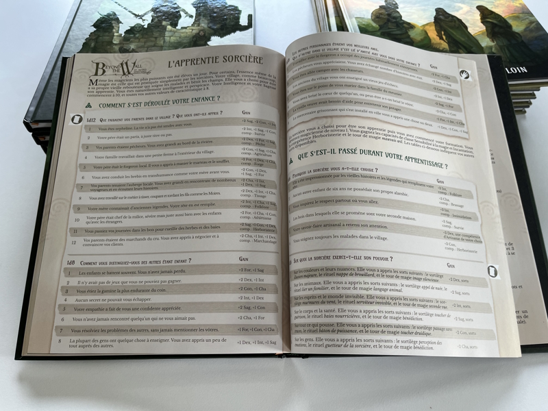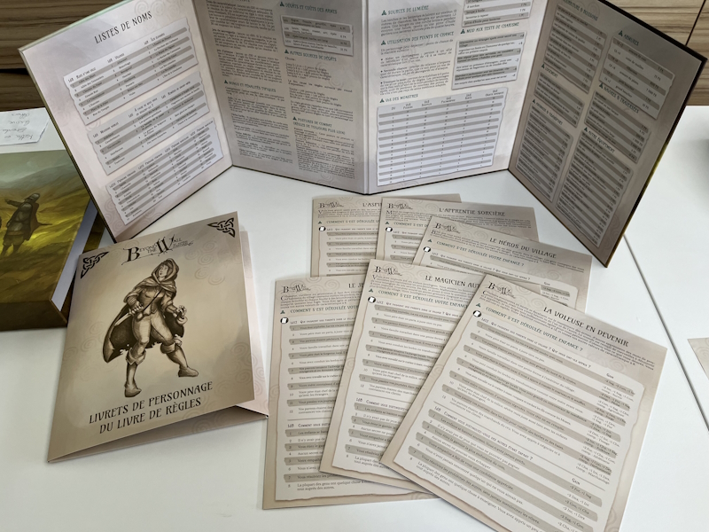🧾 Une création de personnage basée sur des livrets avec tables permettant de créer des historiques partagés et le village des PJ de manière collaborative.