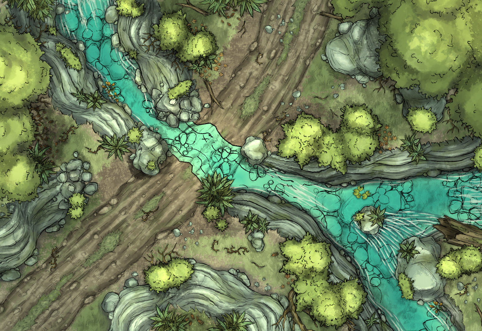 Je partage deux petites maps réalisées avec le logiciel que je trouve très intéressant (et merci à Gogots pour les assets forêts !) :