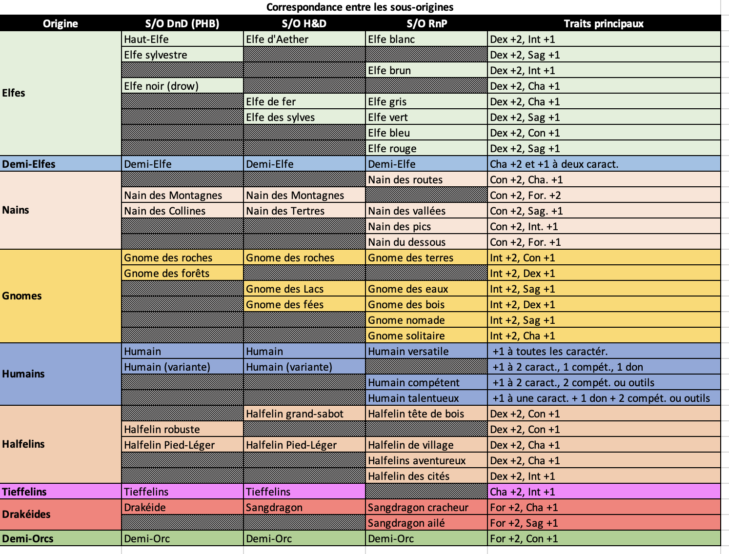 Oui, je n'ai mis que les classes de DnD sur cette capture d'écran (la question était de savoir le lien entre Rnp, H&D et DnD). Ces 4 autres origines sont en effet présentes dans H&D et l'on retrouve les Aasimars dans le livre du joueur de RnP.
