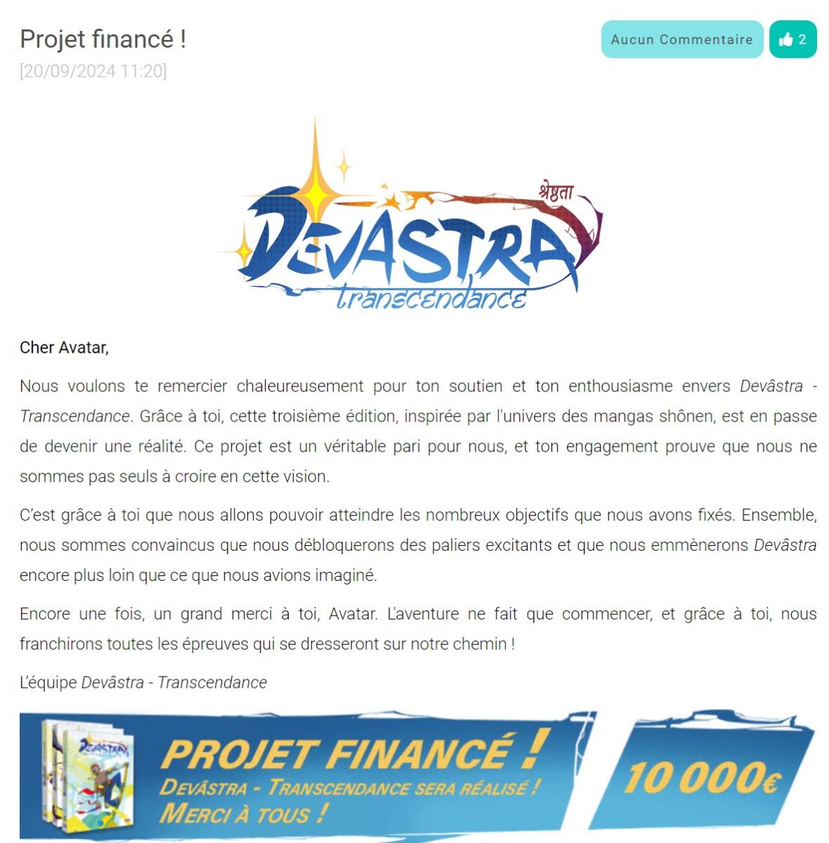 Pages du financement participatif : https://www.gameontabletop.com/cf4201/devastra-transcendance.html