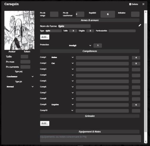 il y a aussi une fiche dédiée pour gérer plus simplement la création de tes PNJs (mais pour l'instant elle est un peu bourrine dans son format faut que je résolve un truc)