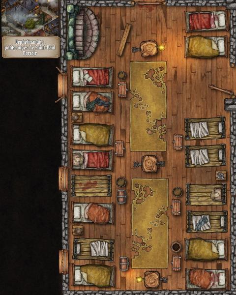Concernant la map de l'orphelinat, pour le moment je suis parti sur la cartographie des pièces principales, des caves et du cimétière. Par sur qu'une carte à une échelle plus grande soit exploitable ?