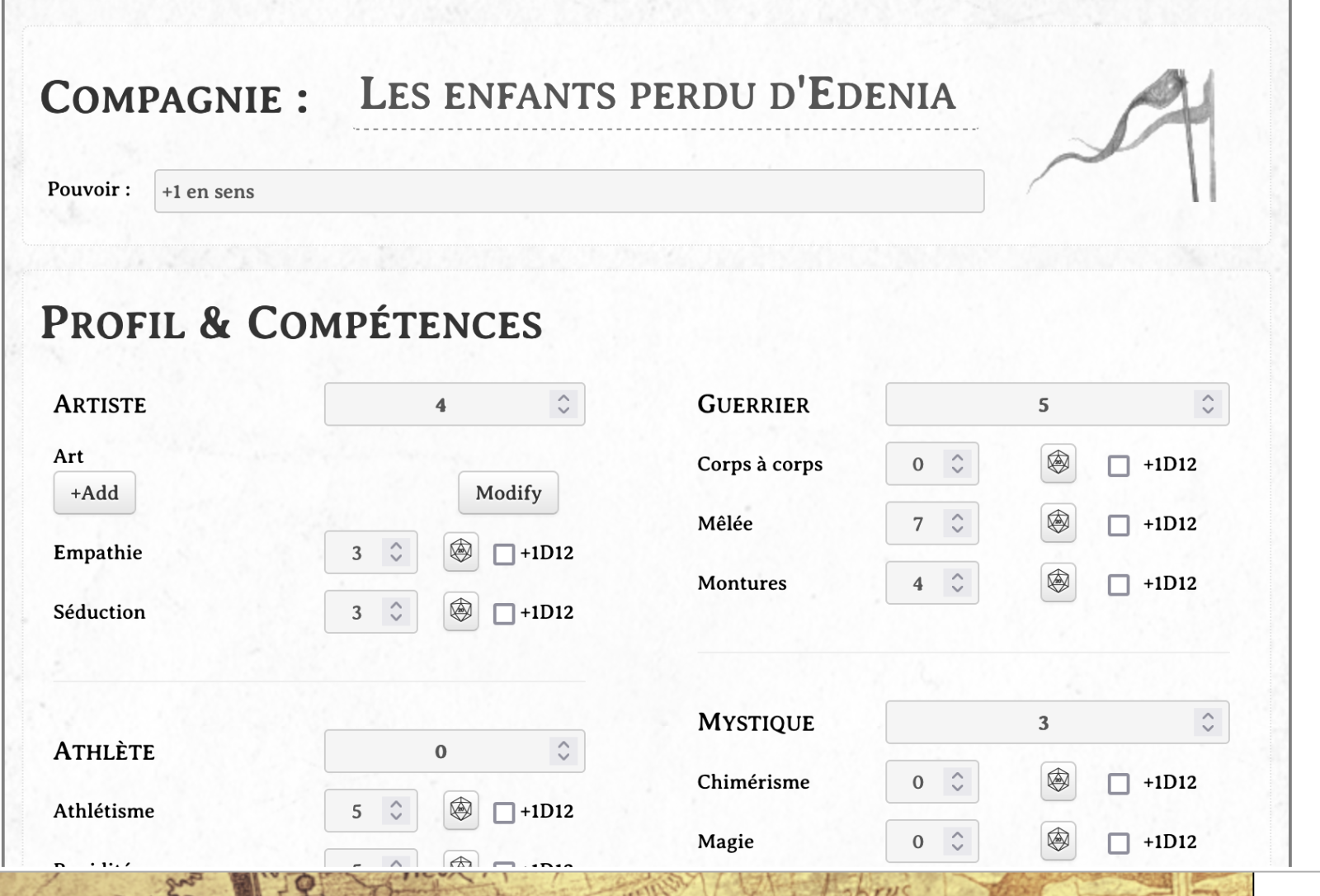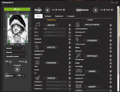 Sinon pour ceux qui jouent en ligne sur Let's Role en utilisant mon système, j'ai fait une très grosse mise à jour visuelle aujourd'hui de la fiche personnage qui a été retravaillée pour sortir pas trop mal avec certaines des skins disponibles.