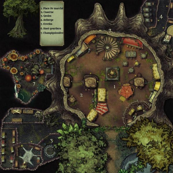 Dans ma partie les joueurs vont tomber dans une embuscade avec des archers sur les tas de détritus et une partie des gnomes qui vont sortir dans le dos des joueurs depuis le tonneau renversé à gauche. Si vous regardez bien certaines dalles sur l'image en haute définition vous verrez qu'une partie des dalles sont couvertes de feuilles et cachent des fosses.