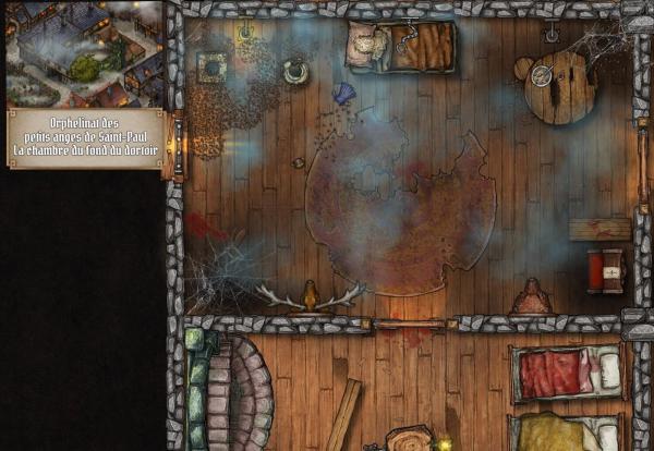 Alors cela avance lentement mais enfin mes joueurs vont enfin aller à l'orphelinat et du coup voici un visuel supplémentaire après le bureau de madame Gonzague. Il s'agit de la chambre du fond du dortoir....