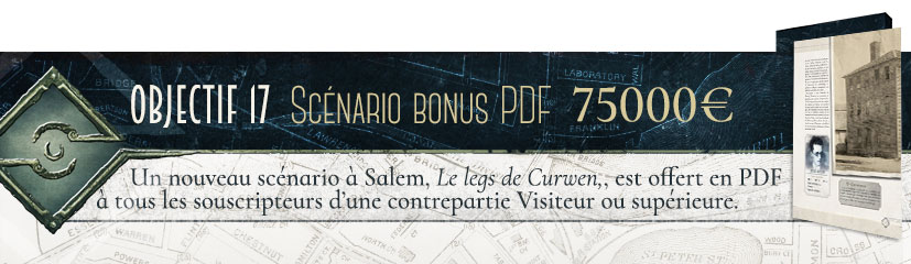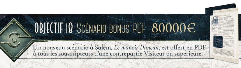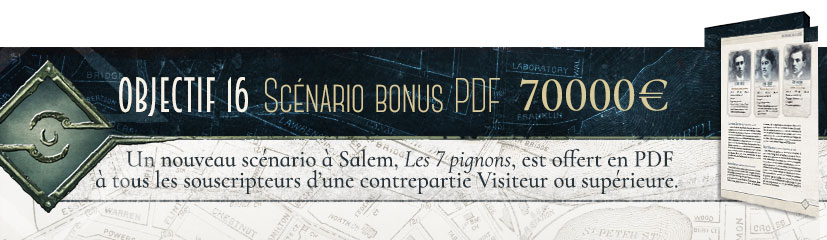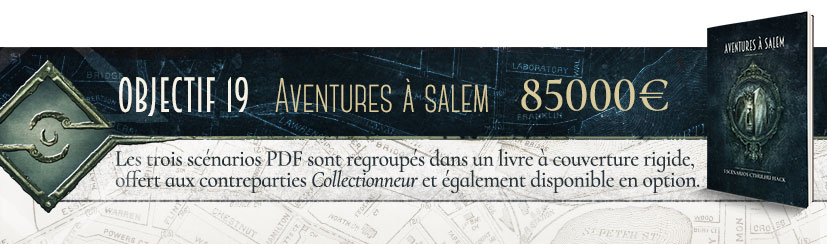 Le prochain objectif permettra de regrouper ces trois scénarios dans un supplément papier, couverture rigide, offert aux contreparties Collectionneur, et disponible en option à prix réduit pour les autres :