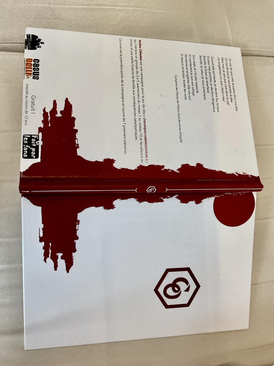 Les documents repris sont : Édition Collector (les 3 livres), la série Échos célestes (les 7 livrets), les accessoires du MJ, les cartes pour les joueurs, le bestiaire des Voiles, les mementos (les 3 packs), les feuilles de pions (les 3 packs).