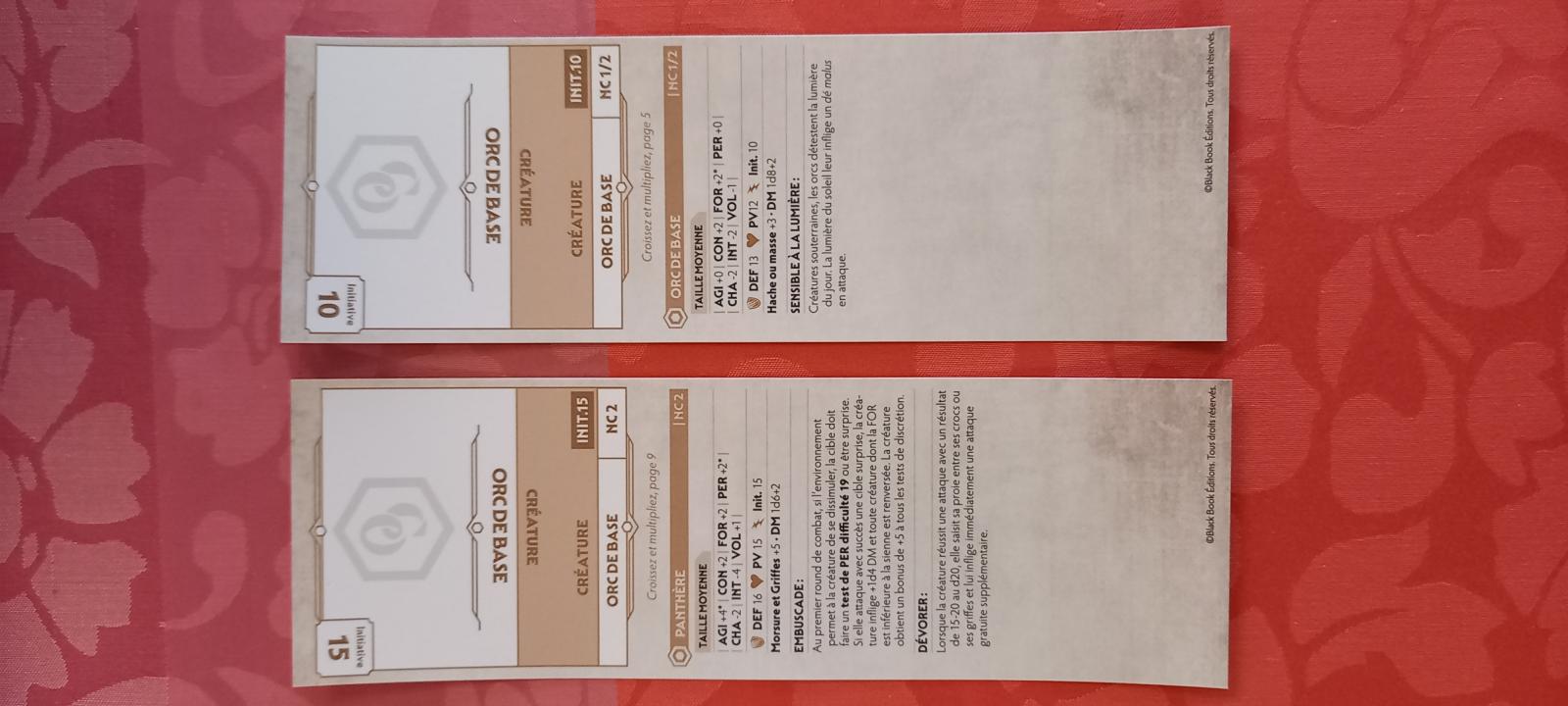 Au delà de l'erreur de désignation (corrigée au feutre - ça fait moins classe), je trouve les mementos de monstres et de PJs très utiles en cours de partie pour un investissement en préparation minime.