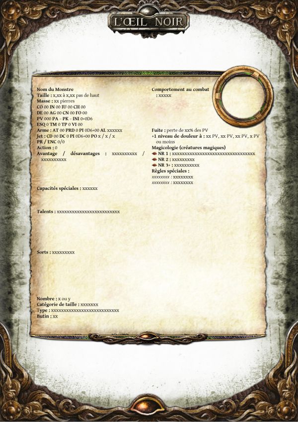Ce qui sera top déjà ce serait une fiche type de monstre avec le stats blocs prêt à être rempli et les zones de texte vides prêtent à être saisies.