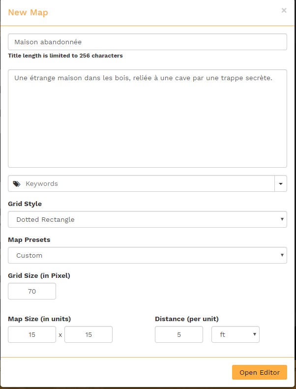 Bref, ouvrons notre campagne. Dans la partie Campaign maps, on recherche notre carte, et on clique sur le stylo, ce qui ouvre une interface d'édition légèrement différente :