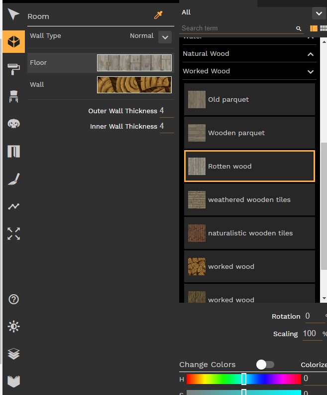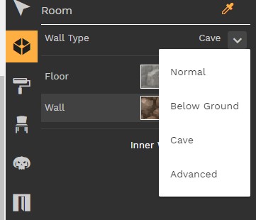 Là aussi on peut sélectionner parmis plusieurs textures pour le sol, et pour les murs. On peut choisir l'épaisseur des murs, et aussi faire des murs un peu plus compliqués que de simples murs droits. Mais on verra ça plus tard.