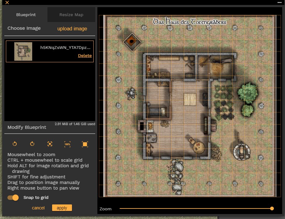 Cela a l'immense avantage de créer une copie locale de votre carte, que vous pourrez modifier à loisir suivant les actions de vos joueurs (déplacer des objets, les retirer, allumer ou éteindre des lumières, etc), sans modifier votre carte d'origine. Et ensuite vous pourrez si vous le souhaitez replaquer votre carte d'origine sur la campagne.
