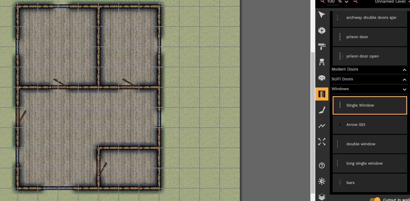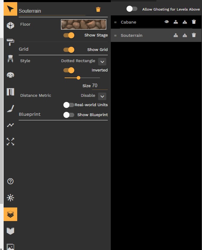On créé donc un nouveau niveau, dans un nouveau matériaux. Et là on va faire un nouveau type de pièce : les caves.