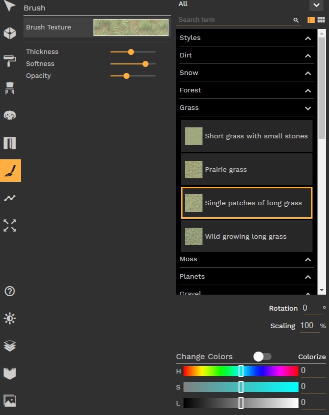 Pour ça je choisis des textures plus ou moins proche de la texture du sol, et je vais passer avec la brosse dessus pour rajouter par transparence un peu de "relief", de désorde.