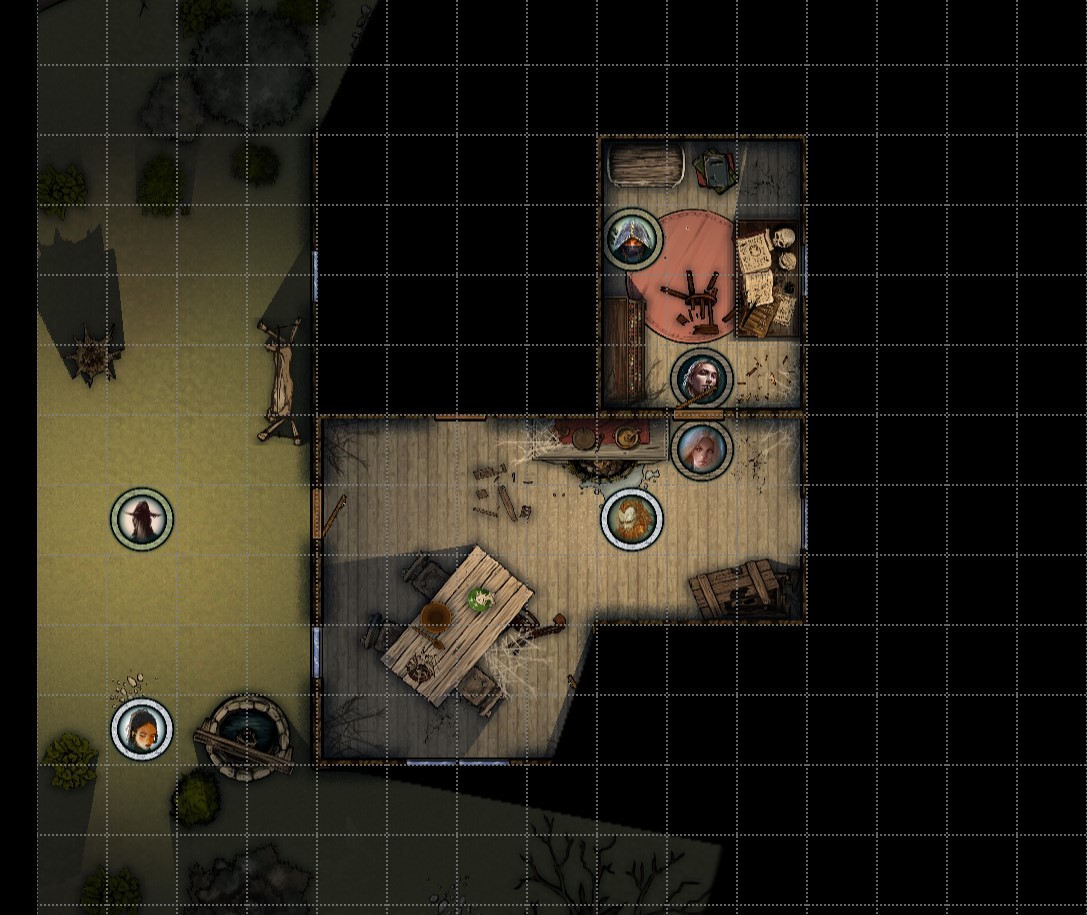 Par contre pour le brouillard de guerre aucun souci. On peut soit réveler toute une pièce (donc pas utile pour ce que tu souhaites), soit utiliser une brosse qui révèle le terrain, déjà plus utile pour toi. On peut même faire en sorte de révèler le terrain en cercle autour du jeton des joueurs, en utilisant la luminosité.