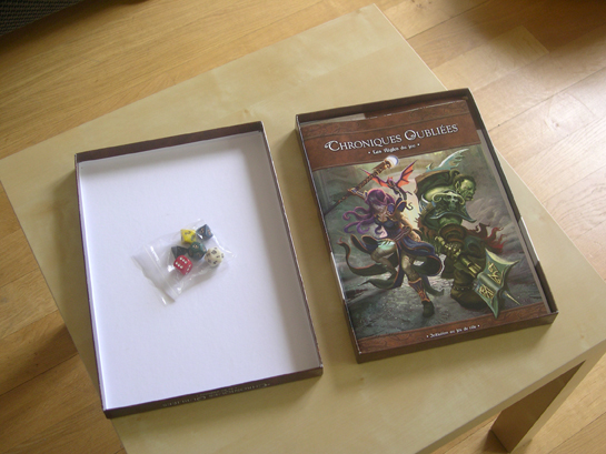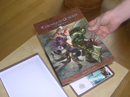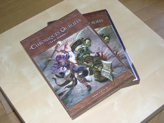 Après des mois de gestation, notre bébé, Chroniques Oubliées • le jeu d’initiation, est sorti du ventre de l'imprimerie ! Au final, il fait 32 cm et pèse moins d'un kilo.