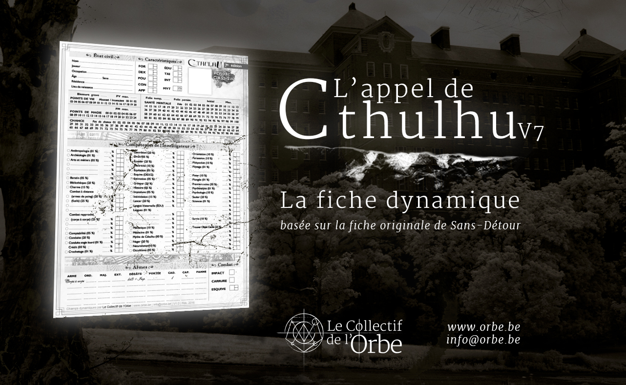Le Collectif de l'Orbe vient de proposer une version dynamique du PDF de la feuille de personnage de L'Appel de Cthulhu v7.