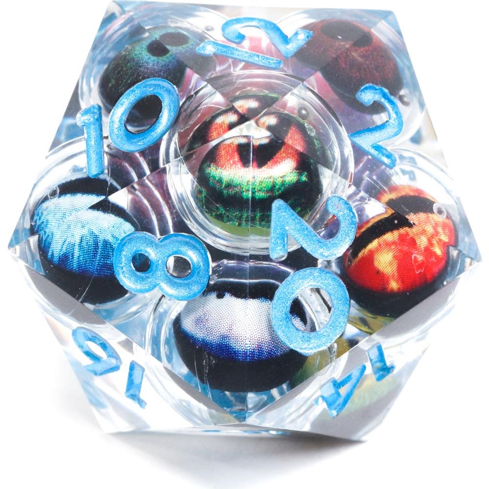 - Des yeux innombrables vous observent ! Jetez ce d20 surdimensionné (33mm) et regardez les rouler ..... c'est terrifiant !