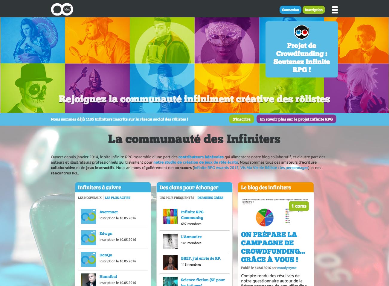 Monté par une passionnée ayant décroché quelques aides financières institutionnelles, le réseau social français pour rôliste Infinite RPG vient de lancer un crowdfunding sur la plateforme ulule pour essayer de développer le site (messagerie instantanée, correction de la version bêta, etc.).