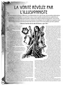 Pour patienter, voici une petite preview de ce qui vous attend, avec un extrait tiré du chapitre dédié à la discipline de l'Illusionniste. Pas de technique ici, mais au contraire un récit de background qui met en avant l'ambiance et donne de nombreuses idées pour interpréter un illusionniste autour de la table de jeu. Pour téléchargez cette preview, cliquez ici ou sur l'image ci-contre !