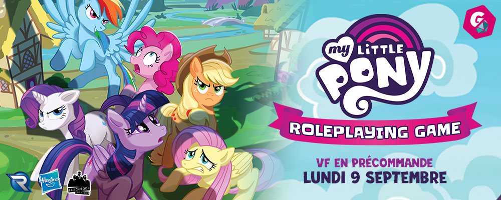 Partez au galop avec le livre de base de la version française de My Little Pony Roleplaying Game disponible en précommande sur Game On Tabletop dès le lundi 9 septembre 2024 à 18h45 ! Préinscrivez-vous pour recevoir un rappel le jour du lancement et mettre la main sur le jeu de rôle le plus coloré de tout le catalogue Black Book Éditions !