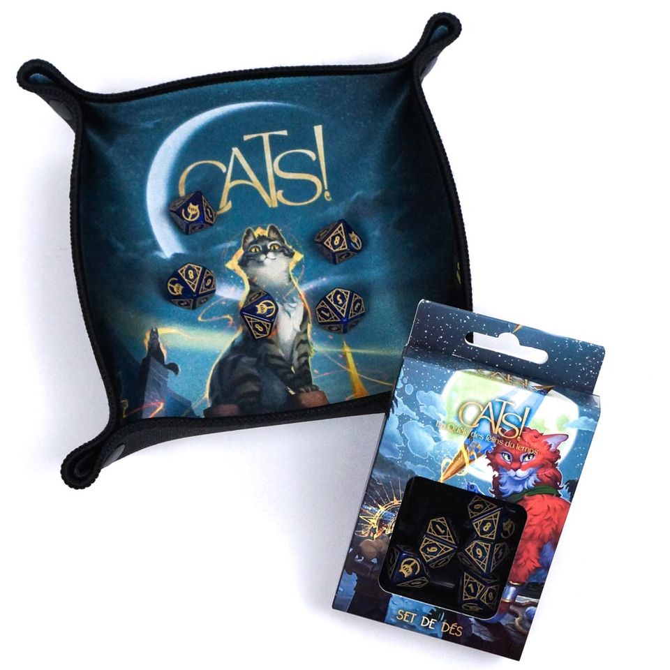 La campagne La Quête des félins du temps et ses divers accessoires (set de dés, nouvelles cartes de faveur, goodies) vient tout juste de sortir dans toutes les bonnes boutiques ! Retournez aux origines du grand complot félin dans cette grande aventure qui commence à l'époque l'Atlantide et fera voyager vos minous à de multiples époques pour éviter un certain nombre de catastrophes... ou au contraire s'assurer qu'un certain nombre d'événements aient bien lieu !
