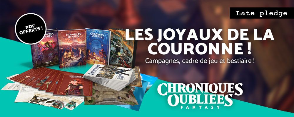 Les envois des précos participatives sont terminés, et ceux des late pledges et précos bundle le seront la semaine prochaine : merci encore pour votre patience. Nous tenons à remercier chaleureusement toutes les personnes qui ont participé au projet, à toutes les étapes de la chaine, et bien évidemment les backers et clients qui ont soutenu ce magnifique lancement de gamme et trouvé leur compte dans une offre généreuse - votre enthousiasme et vos retours unanimes sur la qualité nous donnent l'énergie de continuer à oeuvrer pour faire de Chroniques Oubliées Fantasy la plus belle des gammes !