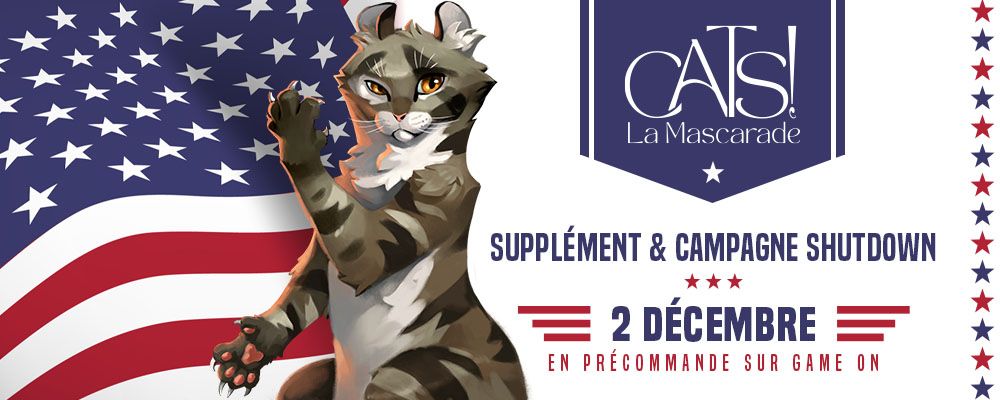 Et ensuite ? Nous nous préparons à lancer la prochaine campagne et supplément avec pour thème l'Amérique via Cats! Shutdown, ainsi que la version anglaise du jeu, Cats! The Conspurracy dans la langue de Shakespeare via un Kickstarter début 2025. Pour vous chauffer, vous pouvez découvrir l'émission en actual play tournée pour l'occasion par nos partenaires de la chaine Rôle'n Play !