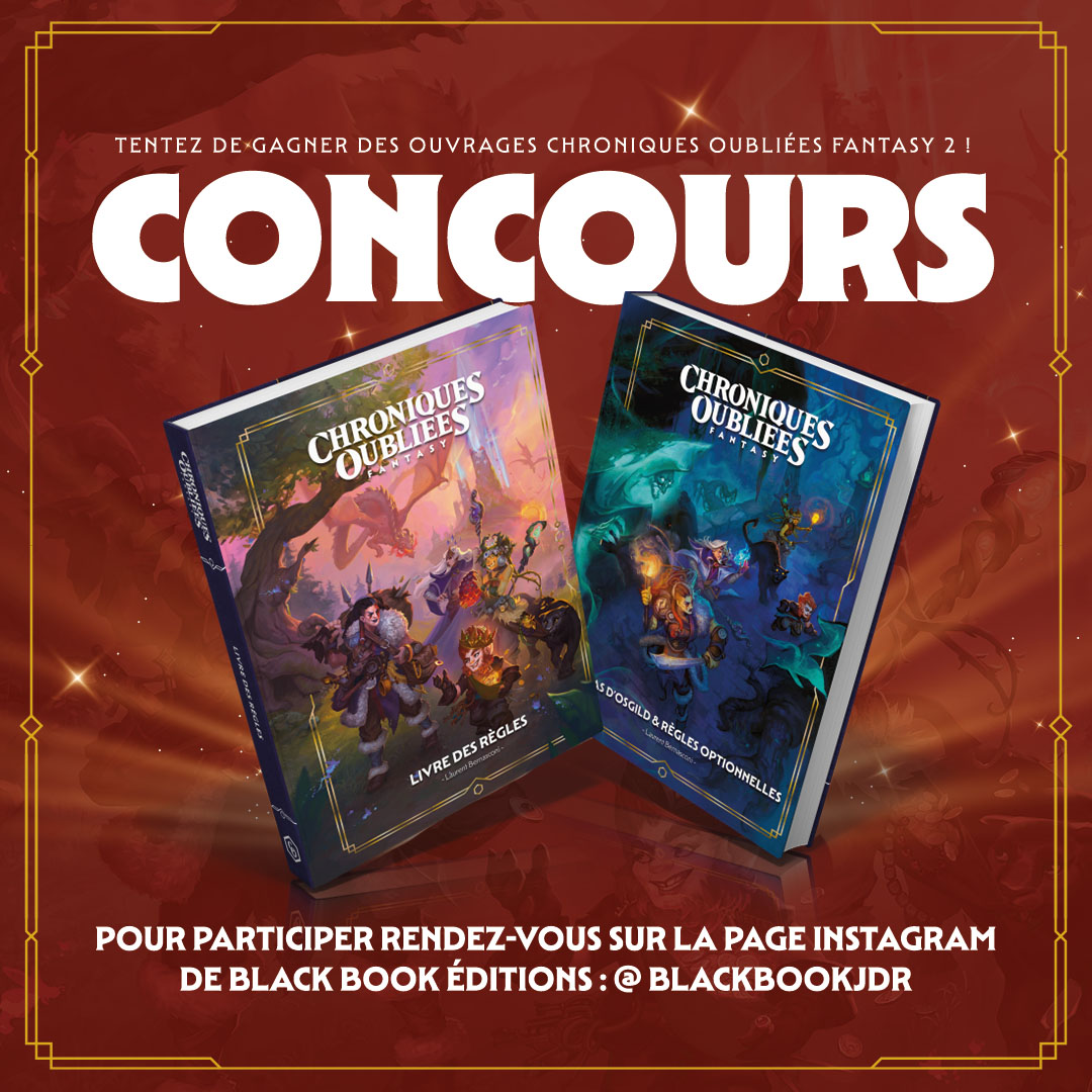 Rendez-vous le 28 octobre sur Game On Tabletop pour précommander les nouveaux cuppléments Chroniques Oubliées Fantasy 2 et rendez-vous dès maintenant sur la page Instagram de Black Book Éditions pour tenter de gagner un exemplaire du Livre de règles et de l'Atlas des Terres d'Osgild !
