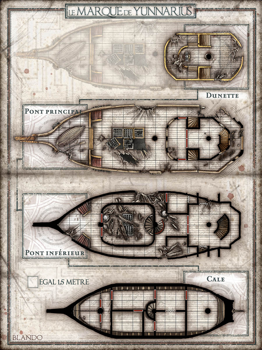 Pour cette première preview, nous avons décidé de vous proposer une illustration, un magnifique plan et ce petit texte en lien avec le navire le "Marque de Yunnarius", en guise d'invitation au voyage (bon, ça sent quand même le voyage compliqué, c'est pas faux !).