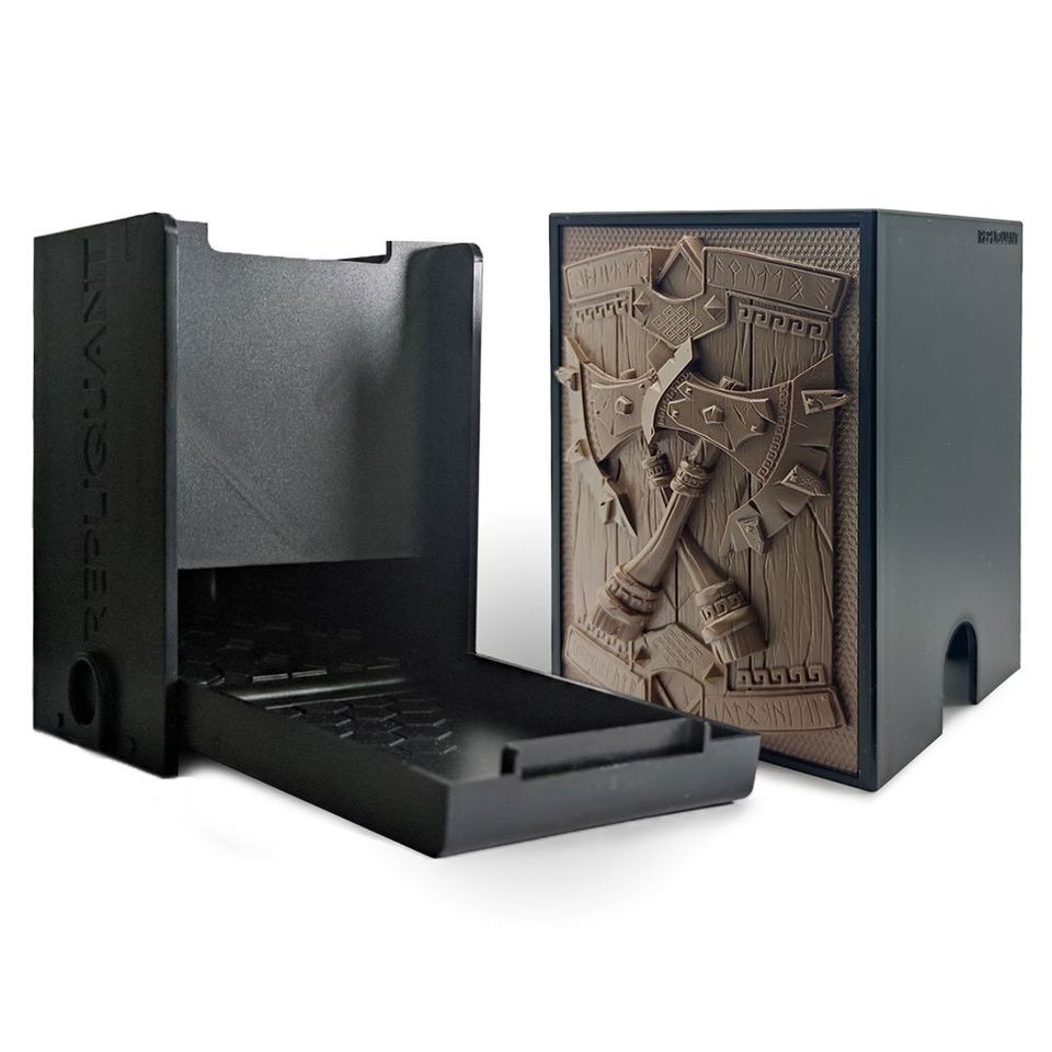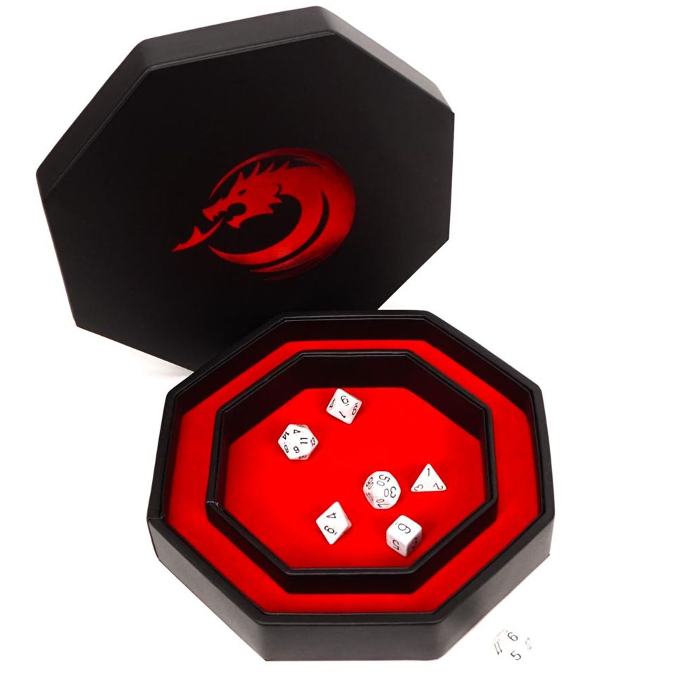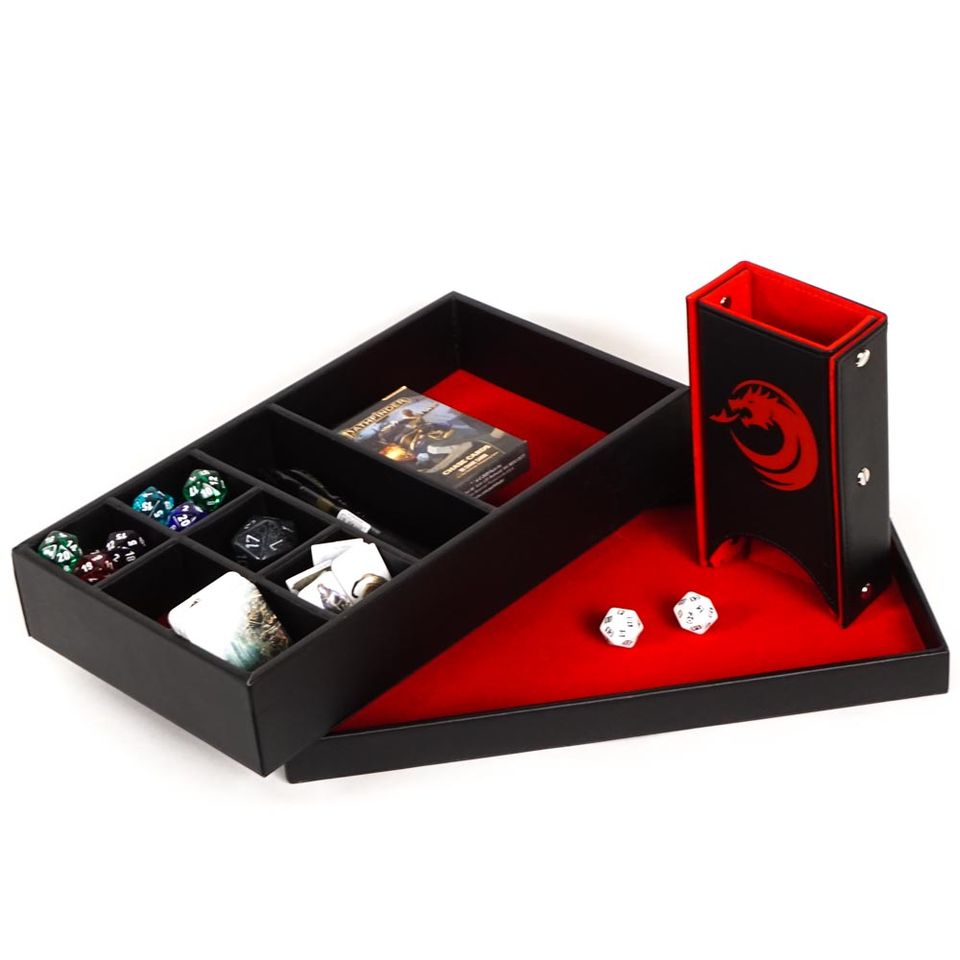 - Des tours à dés et accessoires de rangement : la piste à dés octogonale, le coffret de rangement avec tour à dés intégrée, la housse de rangement, des tours à dés Gothique, Hache to Ashes, Darkkhrane...
