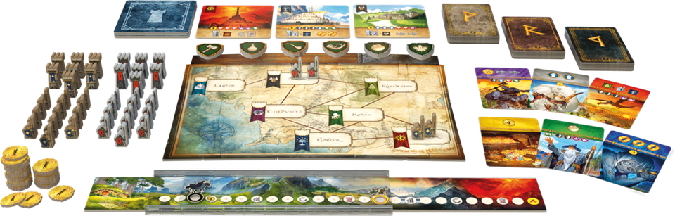 Une partie se joue en 3 chapitres successifs qui se déroulent de façon similaire. Les cartes du chapitre en cours sont mélangées puis placées selon un schéma précis avec certaines cartes visibles, d’autres faces cachées, et des cartes se chevauchant. À votre tour, prenez l’une des cartes accessibles et appliquez son effet : développez vos Compétences, gonflez votre trésor, placez des forteresses sur le plateau central, faites bouger vos troupes, rattrapez Frodon avec votre Nazgul avant qu’il n’atteigne la Montagne du Destin, faites des alliances avec les Peuples Libres, etc.