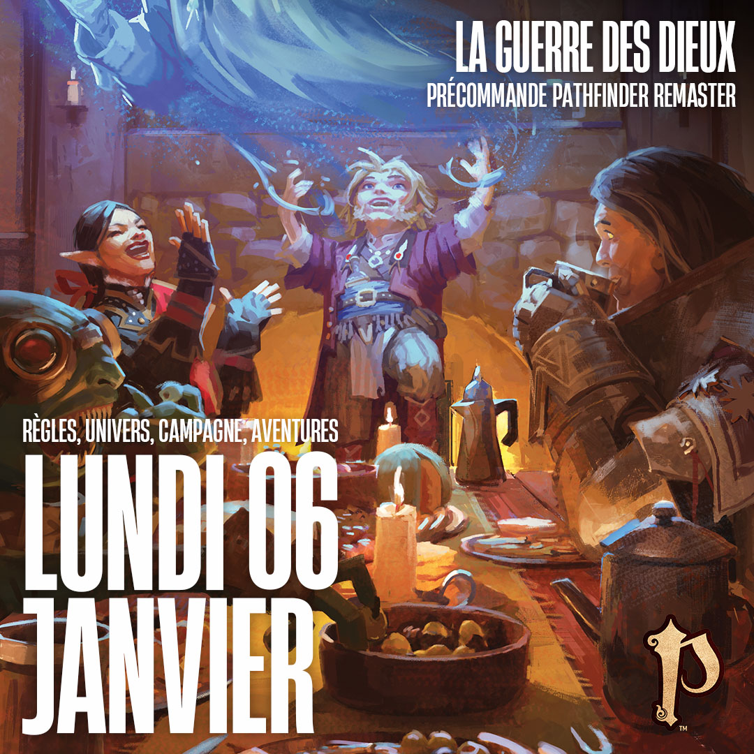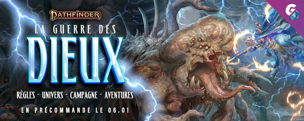 Joueurs et joueuses de Pathfinder, il est temps d'ouvrir le prochain grand arc narratif de la saga dans l'univers de Golarion : La Guerre des Dieux, en préco participative dès le 6 janvier prochain - alors que les envois des ouvrages de la dernière préco participative touchent à leur fin en cette fin d'année !