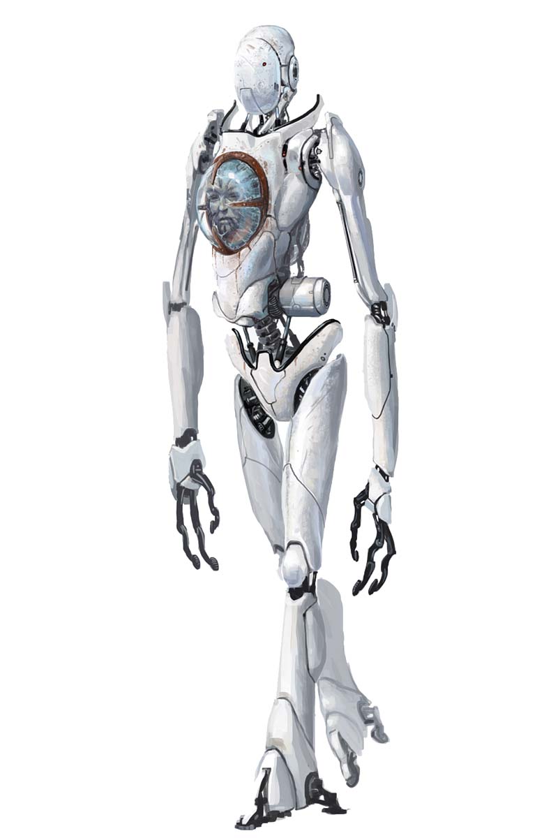 Le décanteur est un automate doté d’un dôme de verre sablé enchâssé au milieu de sa cage thoracique et protégé par des doigts d’acier. À travers la condensation, on aperçoit une tête humaine congelée emprisonnée dans le dôme, immobilisée dans un entrecroisement de liens d’acier, de fils électriques argentés et de câbles luisants. Lorsqu’il s’exprime, c’est à travers une grille bourdonnante montée sur sa tête métallique, et d’une voix dénuée d’émotion.